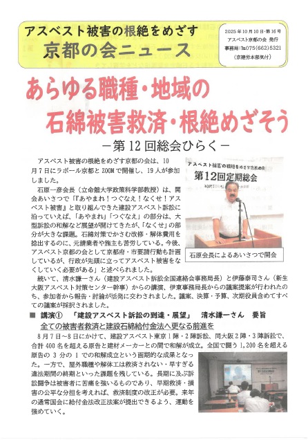 過労死問題が大きな社会問題となり、開設された過労死110番活動の中、1990年11月に、京都職対連などの大きな支援により設立されました。京都職対連は、労働組合・被災者・家族・医療専門家・弁護士・個人により組織され、労災職業病の認定・補償・治療・予防・調査などにとりくんでいます。